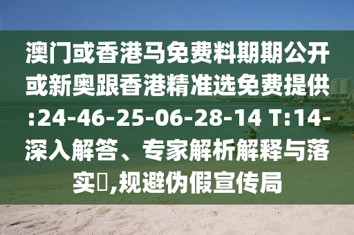 澳門或香港馬免費(fèi)料期期公開(kāi)或新奧跟香港精準(zhǔn)選免費(fèi)提供:24-46-25-06-28-14 T:14-深入解答、專家解析解釋與落實(shí)?,規(guī)避偽假宣傳局