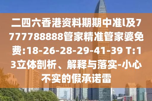 二四六香港資料期期中準(zhǔn)l及7777788888管家精準(zhǔn)管家婆免費(fèi):18-26-28-29-41-39 T:13的立體剖析、解釋與落實(shí)