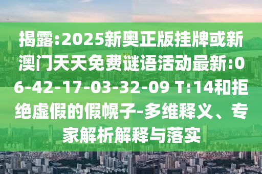 2025新奧正版掛牌或新澳門天天免費(fèi)謎語活動(dòng)最新:06-42-17-03-32-09 T:14:多維釋義、專家解析解釋與落實(shí)