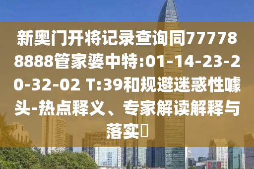 新奧門開將記錄查詢同777788888管家婆中特:01-14-23-20-32-02 T:39熱點釋義、專家解讀解釋與落實”的解析