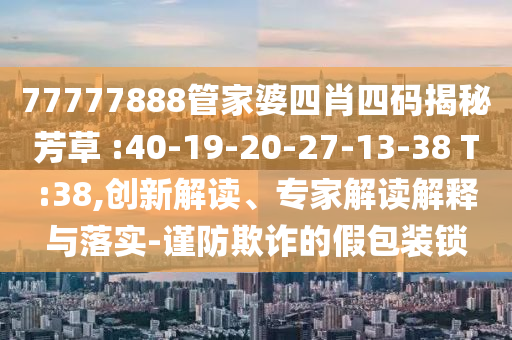 大家好!今天我們要討論的是一組關(guān)鍵詞:“77777888管家婆四肖四碼揭秘芳草”、“謹(jǐn)防欺詐的假包裝鎖”、“創(chuàng)新解讀”、“專家解讀”,這些詞匯似乎涉及到一些特定的信息或活動(dòng),我們需要對(duì)其進(jìn)行全面的釋義、解釋和落實(shí),同時(shí)提醒公眾警惕虛假宣傳。