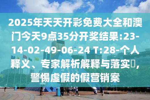 2025年天天開彩免費大全和澳門今天9點35分開獎結(jié)果:23-14-02-49-06-24 T:28-個人釋義、專家解析解釋與落實?,警惕虛假的假營銷案