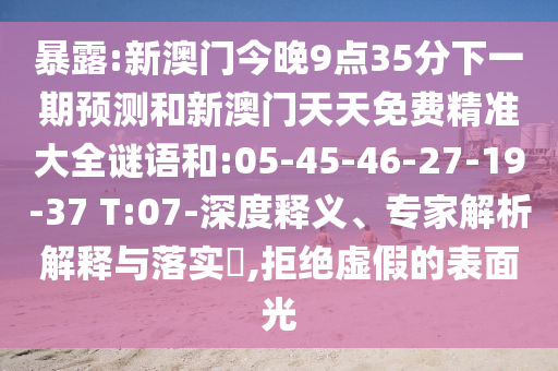 暴露:新澳門今晚9點35分下一期預(yù)測和新澳門天天免費(fèi)精準(zhǔn)大全謎語和:05-45-46-27-19-37 T:07-深度釋義、專家解析解釋與落實?,拒絕虛假的表面光