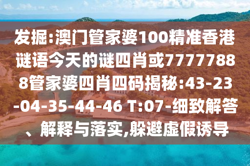 澳門管家婆100精準香港謎語今天的謎四肖或77777888管家婆四肖四碼揭秘:43-23-04-35-44-46 T:07:細致解答、解釋與落實