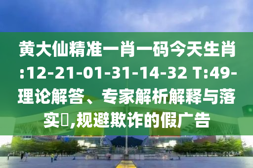 黃大仙精準(zhǔn)一肖一碼今天生肖:12-21-01-31-14-32 T:49理論解答、專家解析解釋與落實(shí)”的解析與警惕虛假宣傳