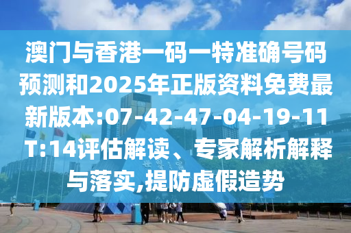 澳門與香港一碼一特準(zhǔn)確號(hào)碼預(yù)測(cè)和2025年正版資料免費(fèi)最新版本:07-42-47-04-19-11 T:14評(píng)估解讀、專家解析解釋與落實(shí),提防虛假造勢(shì)