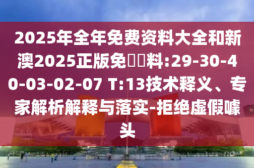 2025年全年免費(fèi)資料大全和新澳2025正版免費(fèi)資料:29-30-40-03-02-07 T:13技術(shù)釋義、專家解析解釋與落實(shí)-拒絕虛假噱頭