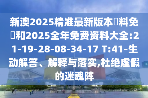 新澳2025精準(zhǔn)最新版本資料免費(fèi)和2025全年免費(fèi)資料大全:21-19-28-08-34-17 T:41:生動(dòng)解答、解釋與落實(shí)