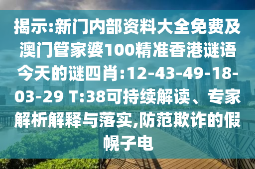 新門內(nèi)部資料大全免費(fèi)及澳門管家婆100精準(zhǔn)香港謎語今天的謎四肖:12-43-49-18-03-29 T:38的可持續(xù)解讀、專家解析解釋與落實(shí)