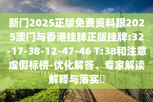 新門2025正版免費(fèi)資料跟2025澳門與香港掛牌正版掛牌:32-17-38-12-47-46 T:38和注意虛假標(biāo)榜-優(yōu)化解答、專家解讀解釋與落實(shí)?