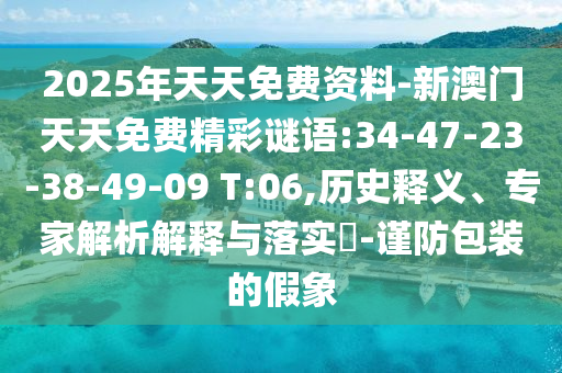 摘要:,,本文提供關(guān)于新澳門天天免費(fèi)精彩謎語的解析,涉及數(shù)字如34-47-23-38-49-09等,并強(qiáng)調(diào)歷史釋義和專家解析的重要性。提醒公眾注意防范包裝的假象,確保信息的真實性和可靠性。內(nèi)容簡潔明了,旨在幫助讀者理解相關(guān)謎語背后的含義和警示。