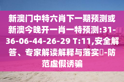 新澳門中特六肖下一期預(yù)測或新澳今晚開一肖一特預(yù)測:31-36-06-44-26-29 T:11,安全解答、專家解讀解釋與落實(shí)?-防范虛假誘騙