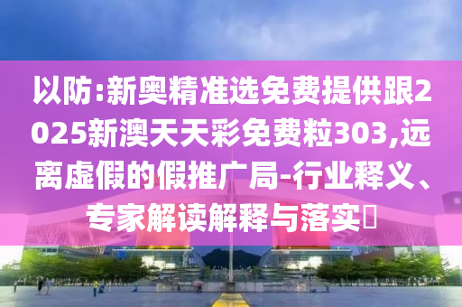 新奧精準(zhǔn)選免費提供與2025新澳天天彩免費粒303行業(yè)”的釋義、專家解讀與落實,以及警惕虛假宣傳