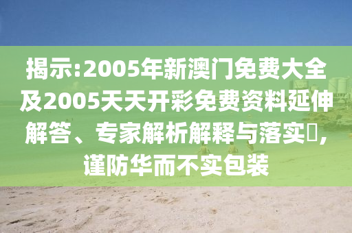 摘要:,,本文揭示了關(guān)于2005年新澳門免費(fèi)大全和天天開(kāi)彩免費(fèi)資料的延伸解答、專家解析解釋與落實(shí)的相關(guān)信息。提醒公眾在參與相關(guān)活動(dòng)時(shí),要謹(jǐn)防華而不實(shí)的包裝和可能的陷阱。專家解析有助于人們更好地理解相關(guān)內(nèi)容的實(shí)質(zhì),但在涉及娛樂(lè)或類似活動(dòng)時(shí),建議公眾保持警惕,避免陷入不必要的風(fēng)險(xiǎn)。