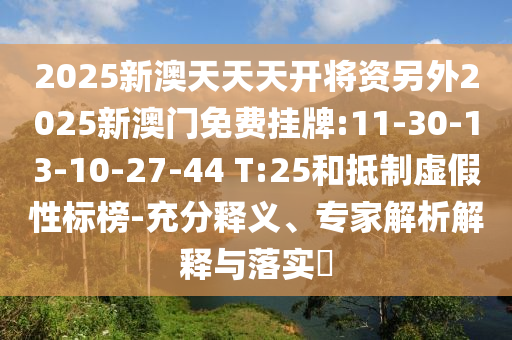 2025新澳天天天開將資另外2025新澳門免費掛牌:11-30-13-10-27-44 T:25:充分釋義、專家解析解釋與落實?