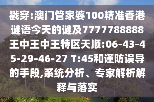 戳穿:澳門管家婆100精準(zhǔn)香港謎語今天的謎及7777788888王中王中王特區(qū)天順:06-43-45-29-46-27 T:45和謹(jǐn)防誤導(dǎo)的手段,系統(tǒng)分析、專家解析解釋與落實(shí)