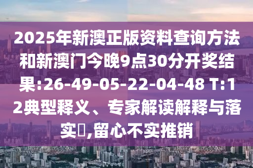 摘要:至2025年,新澳正版資料查詢方法便捷,可獲取最新開獎結(jié)果。例如今晚9點(diǎn)30分的新澳門開獎結(jié)果為26-49-05-22-04-48,其中T:12。這結(jié)果附有典型釋義和專家解讀解釋,以幫助理解并落實(shí)。同時(shí)需注意防范不實(shí)推銷信息。