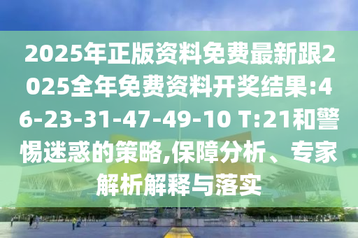 摘要:本文介紹了關(guān)于2025年正版資料免費(fèi)最新和全年免費(fèi)資料開獎結(jié)果的最新信息,包括數(shù)字46、23、31、47、49和10等開獎號碼。提醒人們警惕迷惑策略,通過保障分析、專家解析解釋和落實(shí)等措施,確保信息的真實(shí)性和準(zhǔn)確性。文章內(nèi)容簡潔明了,旨在為廣大讀者提供有用的參考信息。