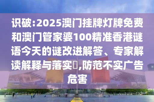 識破:2025澳門掛牌燈牌免費(fèi)和澳門管家婆100精準(zhǔn)香港謎語今天的謎改進(jìn)解答、專家解讀解釋與落實(shí)?,防范不實(shí)廣告危害