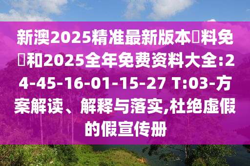 新澳2025精準最新版本資料免費和2025全年免費資料大全:24-45-16-01-15-27 T:03:方案解讀、解釋與落實