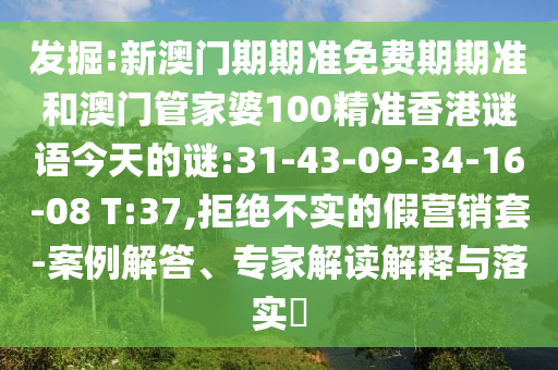 發(fā)掘:新澳門期期準(zhǔn)免費期期準(zhǔn)和澳門管家婆100精準(zhǔn)香港謎語今天的謎:31-43-09-34-16-08 T:37,拒絕不實的假營銷套-案例解答、專家解讀解釋與落實?