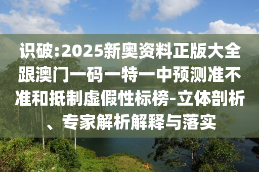 2025新奧資料正版大全與澳門一碼一特一中預測準確性”的立體剖析、專家解析解釋及落實行動,并警惕虛假宣傳