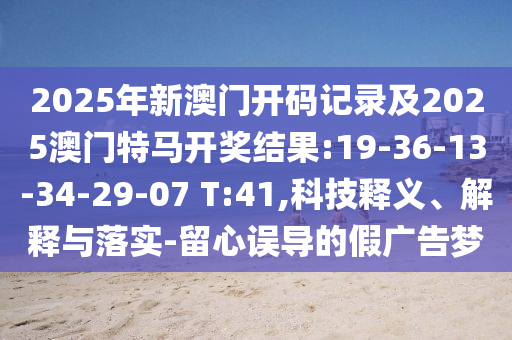 摘要:本文介紹了關(guān)于澳門(mén)特馬開(kāi)獎(jiǎng)的內(nèi)容,包括2025年新澳門(mén)開(kāi)碼記錄和特馬開(kāi)獎(jiǎng)結(jié)果。文章還提到了科技釋義、解釋與落實(shí)的重要性,提醒讀者要留心誤導(dǎo)的假?gòu)V告。文章內(nèi)容簡(jiǎn)短明了,旨在為讀者提供有用的信息和建議。
