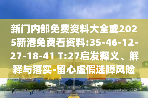 新門內部免費資料大全或2025新港免費看資料:35-46-12-27-18-41 T:27啟發(fā)釋義、解釋與落實-留心虛假迷障風險