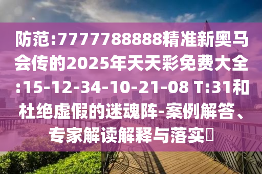 防范:7777788888精準新奧馬會傳的2025年天天彩免費大全:15-12-34-10-21-08 T:31和杜絕虛假的迷魂陣-案例解答、專家解讀解釋與落實?