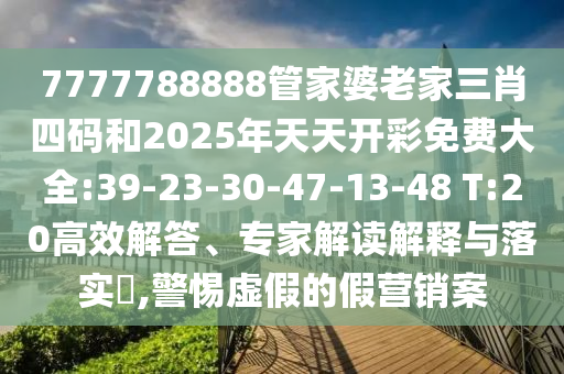 7777788888管家婆老家三肖四碼和2025年天天開彩免費(fèi)大全:39-23-30-47-13-48 T:20高效解答、專家解讀解釋與落實(shí)?,警惕虛假的假營(yíng)銷案