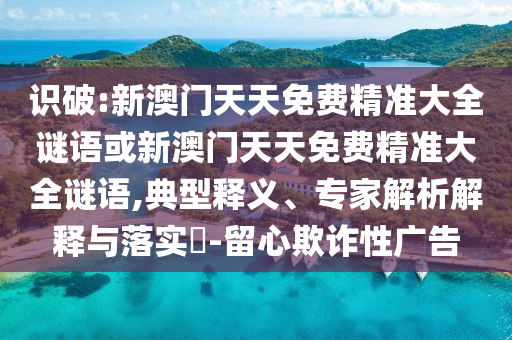 識破新澳門天天免費精準大全謎語”與“留心欺詐性廣告”的典型釋義、專家解析解釋與落實