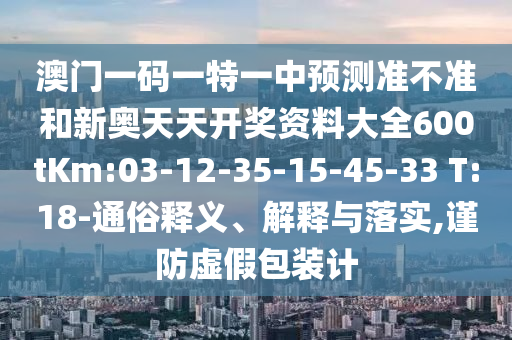 澳門一碼一特一中預測準不準和新奧天天開獎資料大全600tKm:03-12-35-15-45-33 T:18-通俗釋義、解釋與落實,謹防虛假包裝計