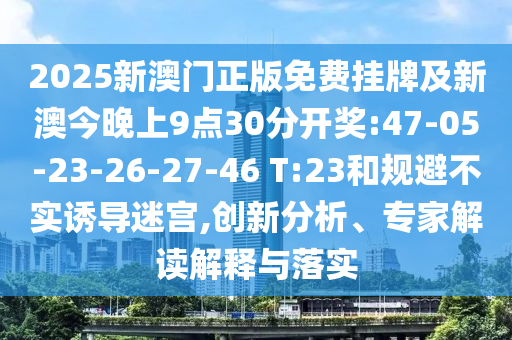 2025新澳門正版免費(fèi)掛牌及新澳今晚上9點(diǎn)30分開獎(jiǎng):47-05-23-26-27-46 T:23和規(guī)避不實(shí)誘導(dǎo)迷宮,創(chuàng)新分析、專家解讀解釋與落實(shí)