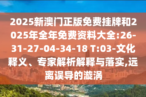 2025新澳門(mén)正版免費(fèi)掛牌和2025年全年免費(fèi)資料大全:26-31-27-04-34-18 T:03-文化釋義、專(zhuān)家解析解釋與落實(shí),遠(yuǎn)離誤導(dǎo)的漩渦