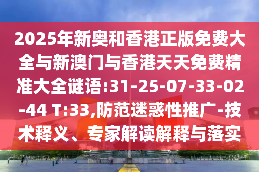 2025年新奧和香港正版免費(fèi)大全與新澳門與香港天天免費(fèi)精準(zhǔn)大全謎語:31-25-07-33-02-44 T:33,防范迷惑性推廣-技術(shù)釋義、專家解讀解釋與落實(shí)
