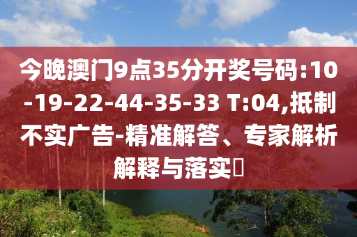 今晚澳門9點(diǎn)35分開獎(jiǎng)號(hào)碼:10-19-22-44-35-33 T:04的精準(zhǔn)解答、專家解析解釋與落實(shí)?